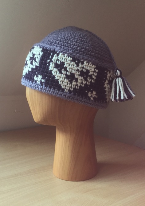Dusky Mauve, Dark Purple & Cream Pang Hat - Pure wool, chunky, hand crocheted - £45.00