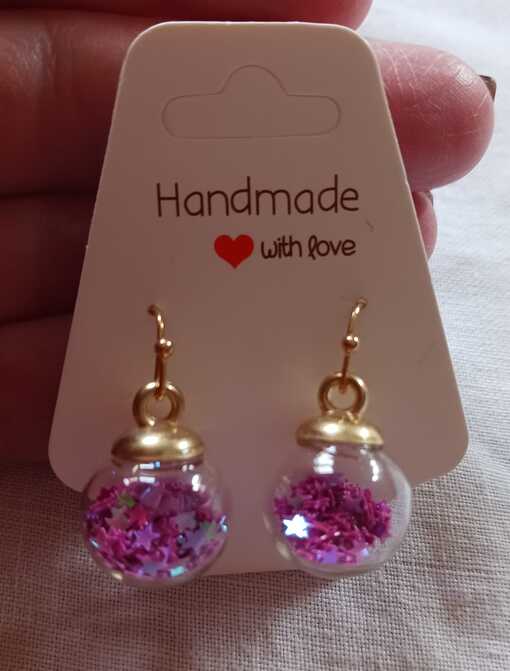 Purple Sequin Glass Bauble Earrings - Glass bauble containing purple sequin stars - £7.00