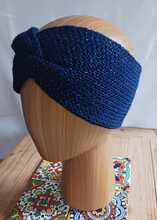 Midnight blue with glitter twisted headband - Knitted, double thickness