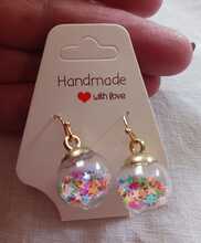 Multi-Coloured Sequin Glass Bauble Earrings - Glass bauble containing multi-coloured sequin stars