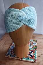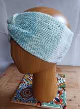 Torquoise mint grey white mix twisted headband - Knitted, double thickness